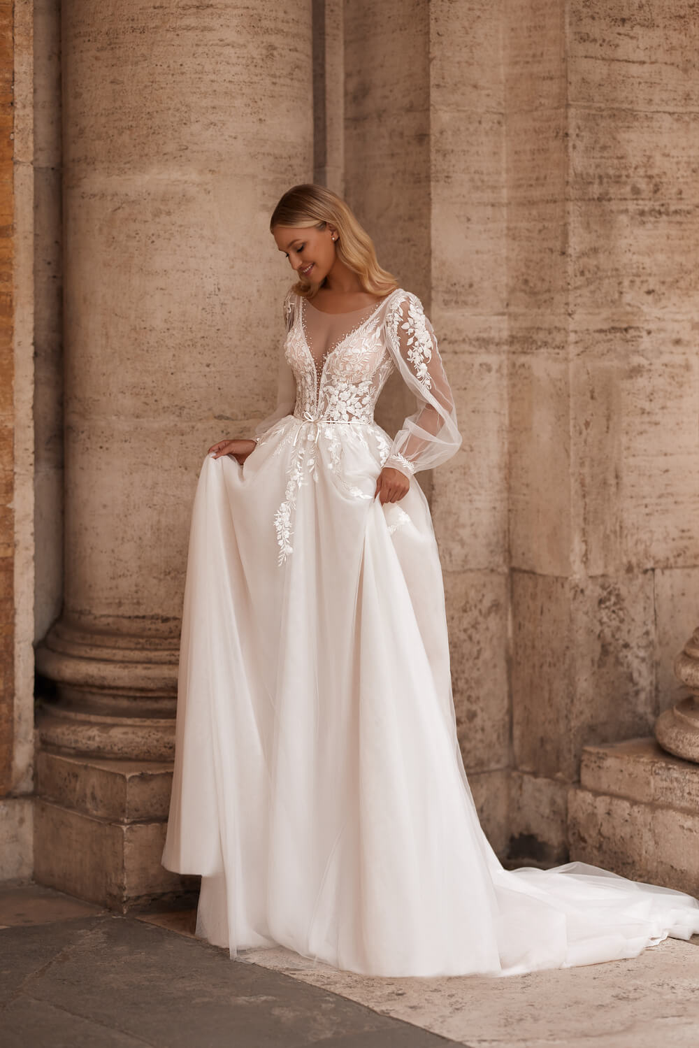 W naszych salonach dobierzecie również potrzebne dodatki dopełniające wybraną suknię slubną. W ofercie posiadamy bogaty wybór welonów, ozdób do włosów, biżuterii, obuwia oraz bolerek i cieplejszych okryć. Chcąc sprostać wymaganiom naszych klientek realizujemy również indywidualne projekty dodatków, które idealnie dopełnią stylizację wybranej kreacji ślubnej.