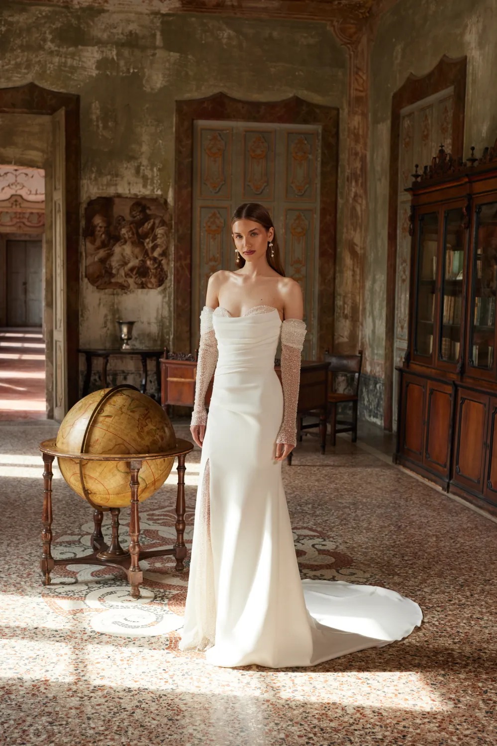 W naszych salonach dobierzecie również potrzebne dodatki dopełniające wybraną suknię slubną. W ofercie posiadamy bogaty wybór welonów, ozdób do włosów, biżuterii, obuwia oraz bolerek i cieplejszych okryć. Chcąc sprostać wymaganiom naszych klientek realizujemy również indywidualne projekty dodatków, które idealnie dopełnią stylizację wybranej kreacji ślubnej.