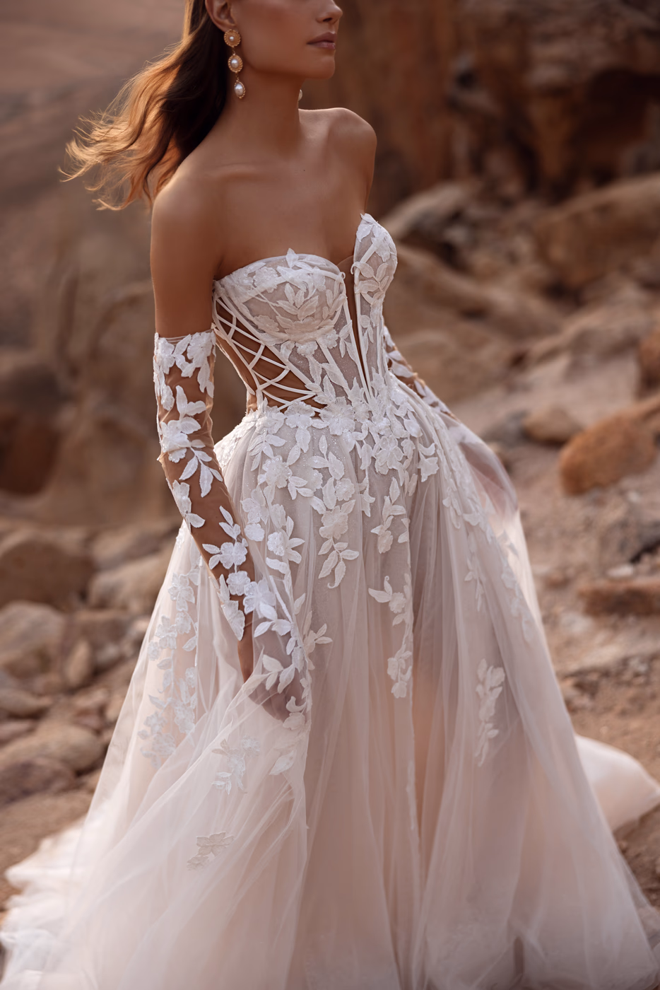 W naszych salonach dobierzecie również potrzebne dodatki dopełniające wybraną suknię slubną. W ofercie posiadamy bogaty wybór welonów, ozdób do włosów, biżuterii, obuwia oraz bolerek i cieplejszych okryć. Chcąc sprostać wymaganiom naszych klientek realizujemy również indywidualne projekty dodatków, które idealnie dopełnią stylizację wybranej kreacji ślubnej.